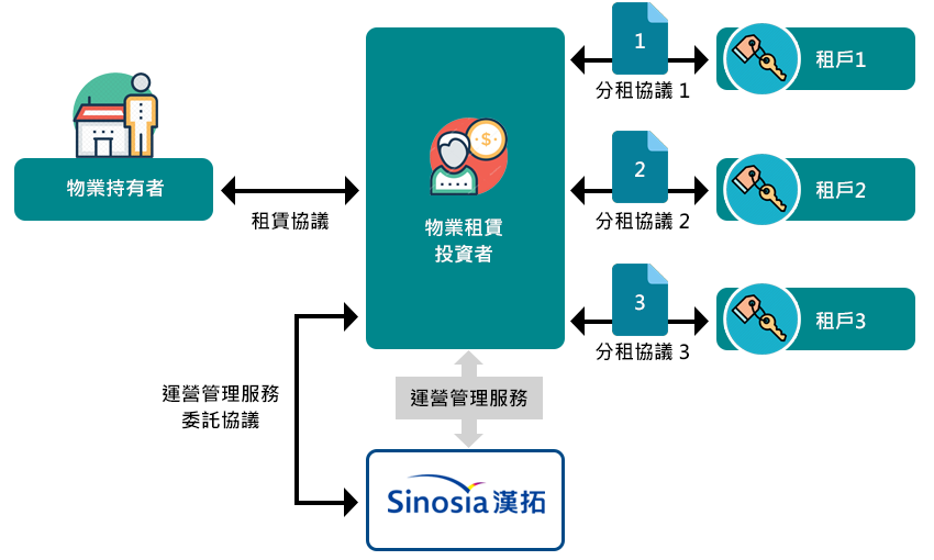 業務模式 | 物業租賃投資者委託漢拓為項目管理公司,負責提供全方位資產運營和專業管理服務,提升項目價值 |